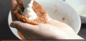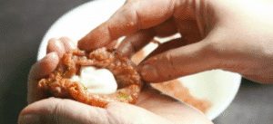 - Gently lift the sides and roll into a round shape. Make sure that mayonnaise do not come out from the kabab.