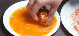 - Coat the kabab in breadcrumbs as shown in the pic.